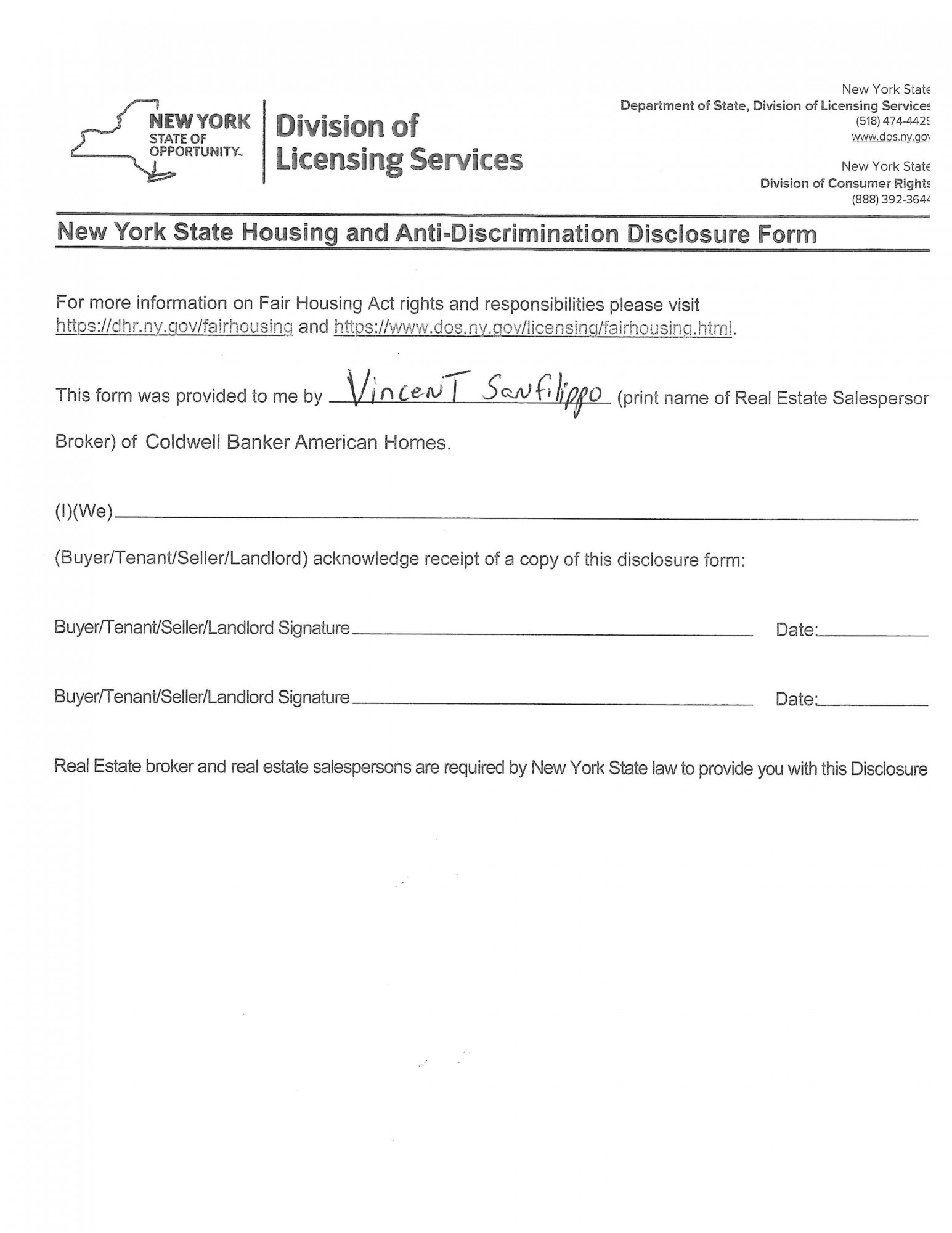 Agent License Information: Licensed Real Estate Salesperson